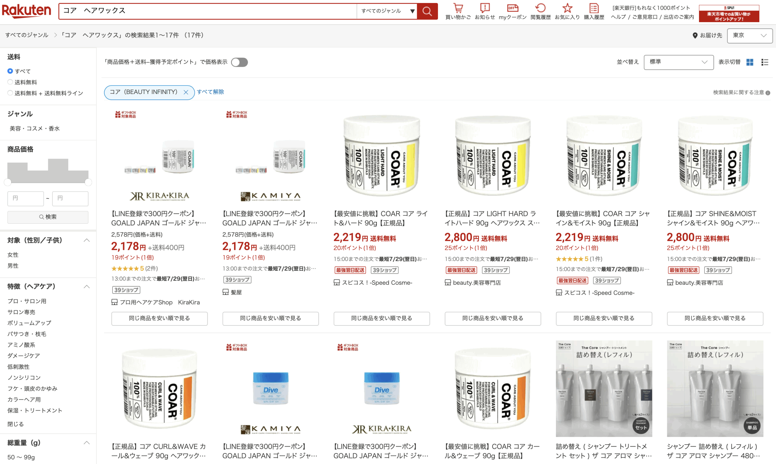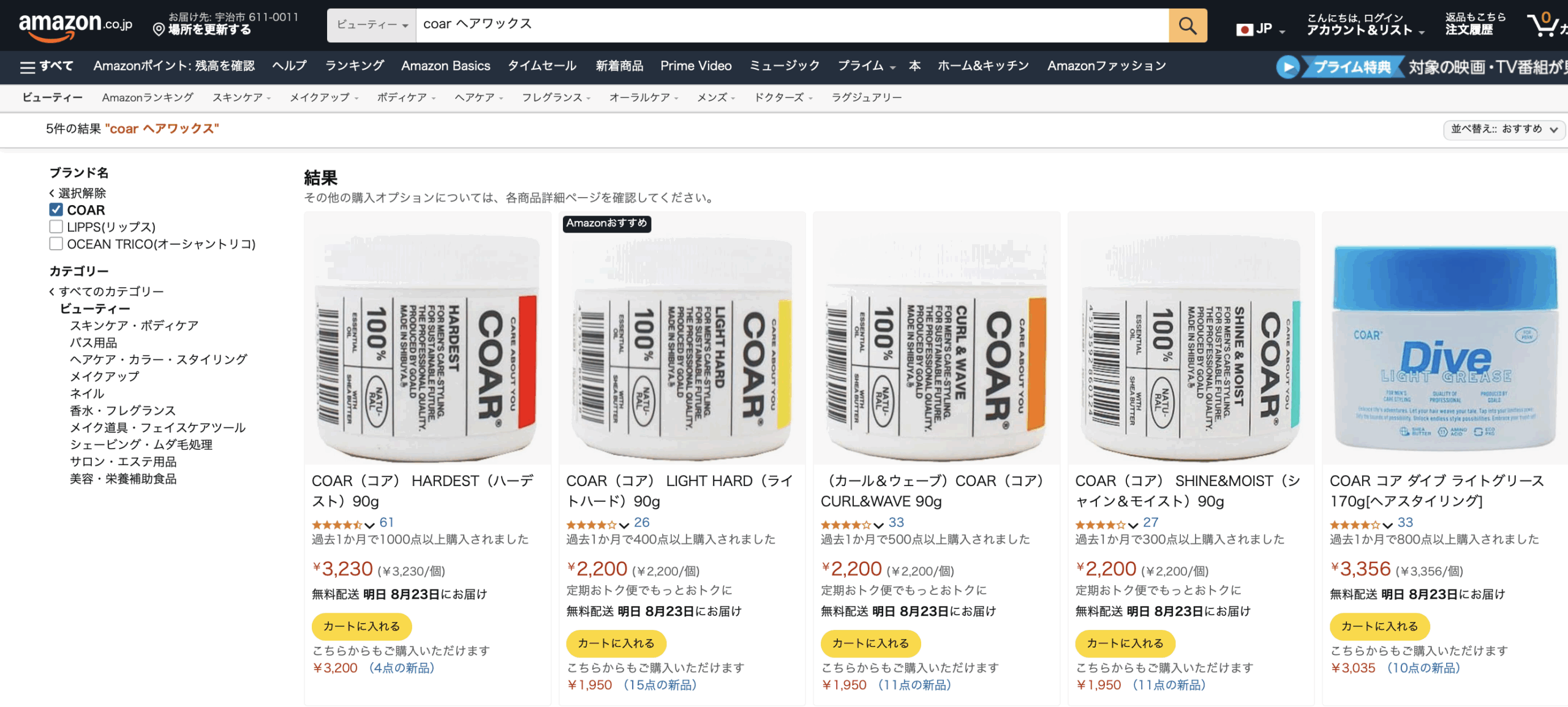 COARヘアワックスはアマゾンや楽天市場で売ってる?