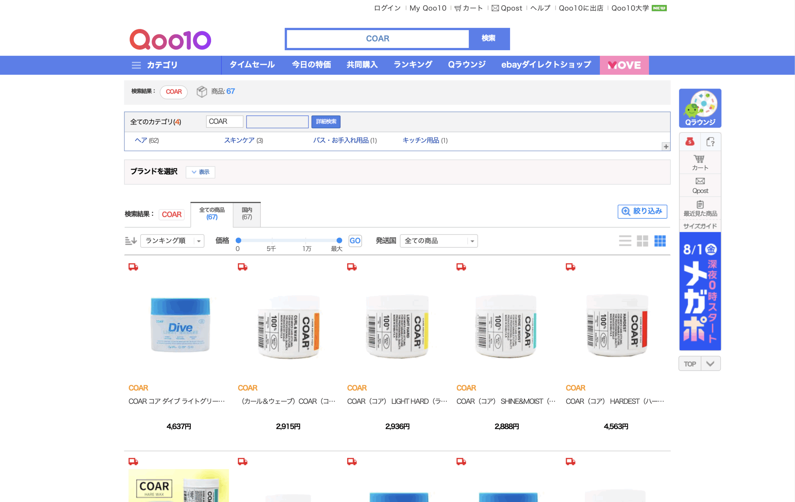 総合ECサイト「Qoo10」でもCOARヘアワックスは売っています。