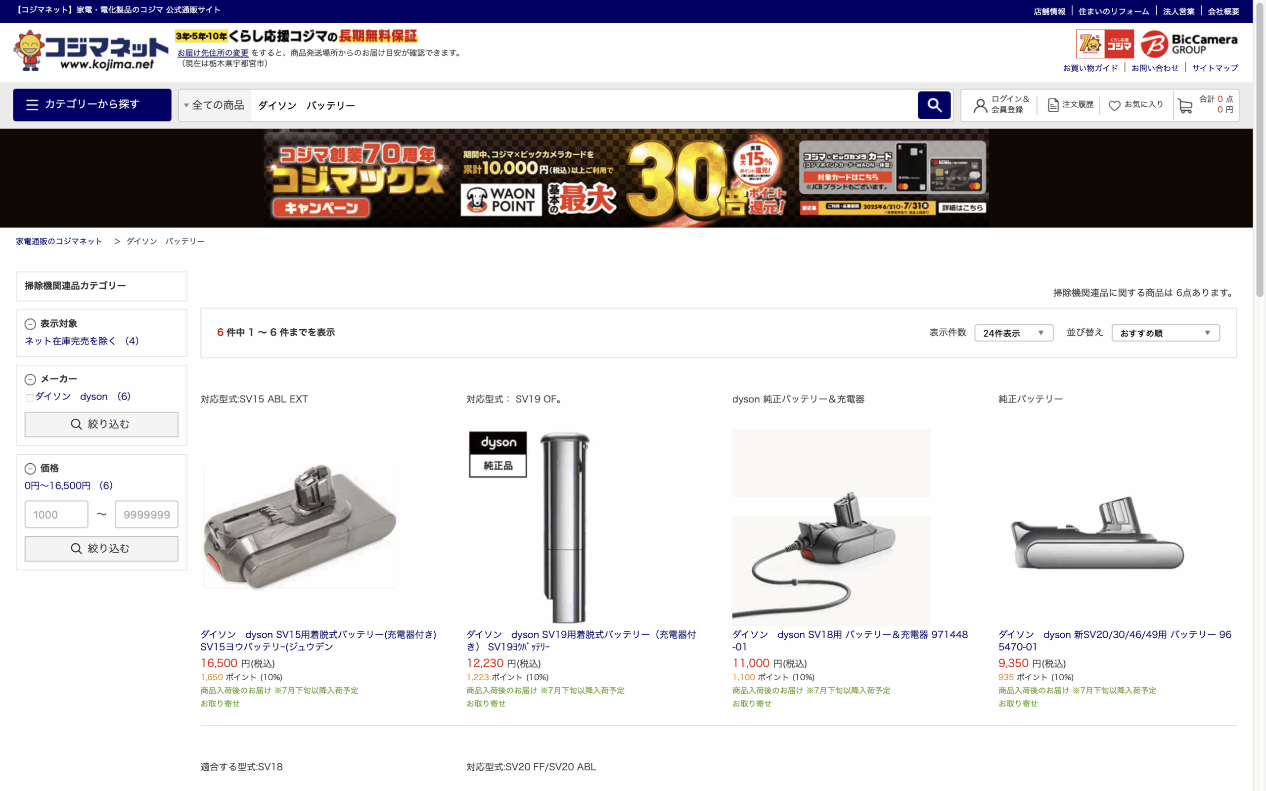 商品一覧(ダイソン バッテリー / 掃除機関連品) – 家電通販のコジマネット –
