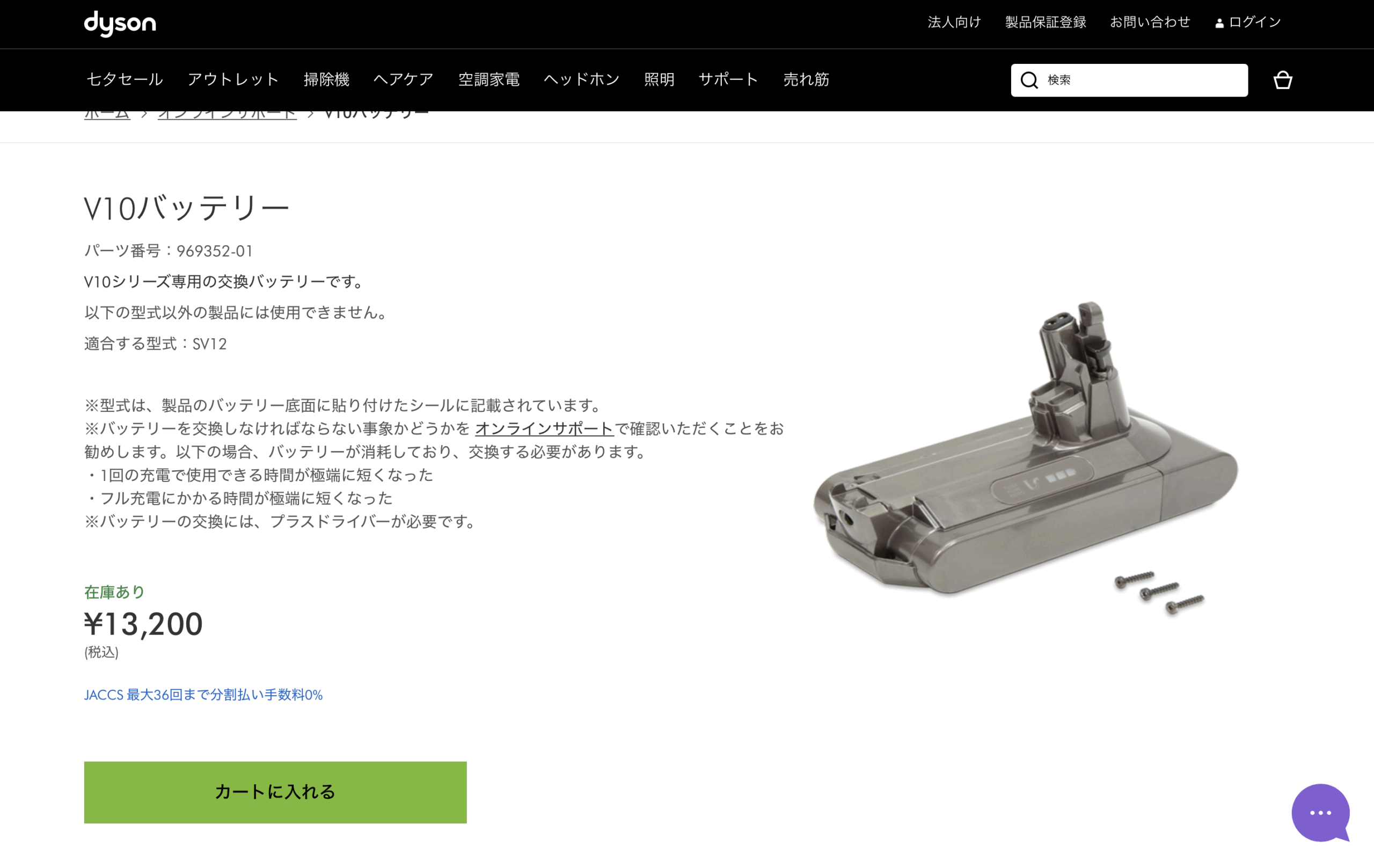 ダイソンの公式サイトではオンラインサポートが充実しており、各製品ごとに対応した純正バッテリーを販売しています。