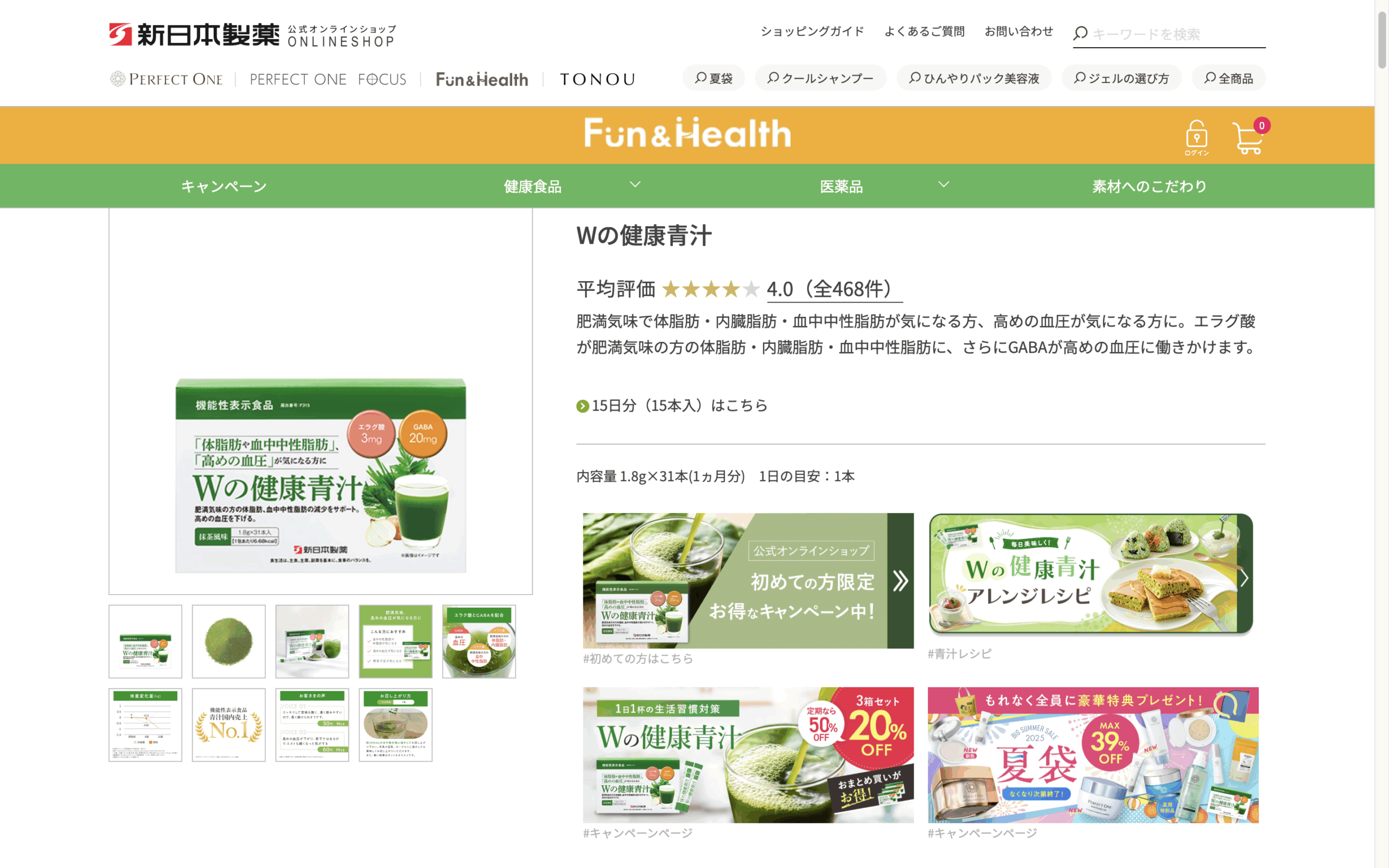 Wの健康青汁はアマゾンで売っています。販売元である新日本製薬の公式ページがあるのでそちらから買うことができます。