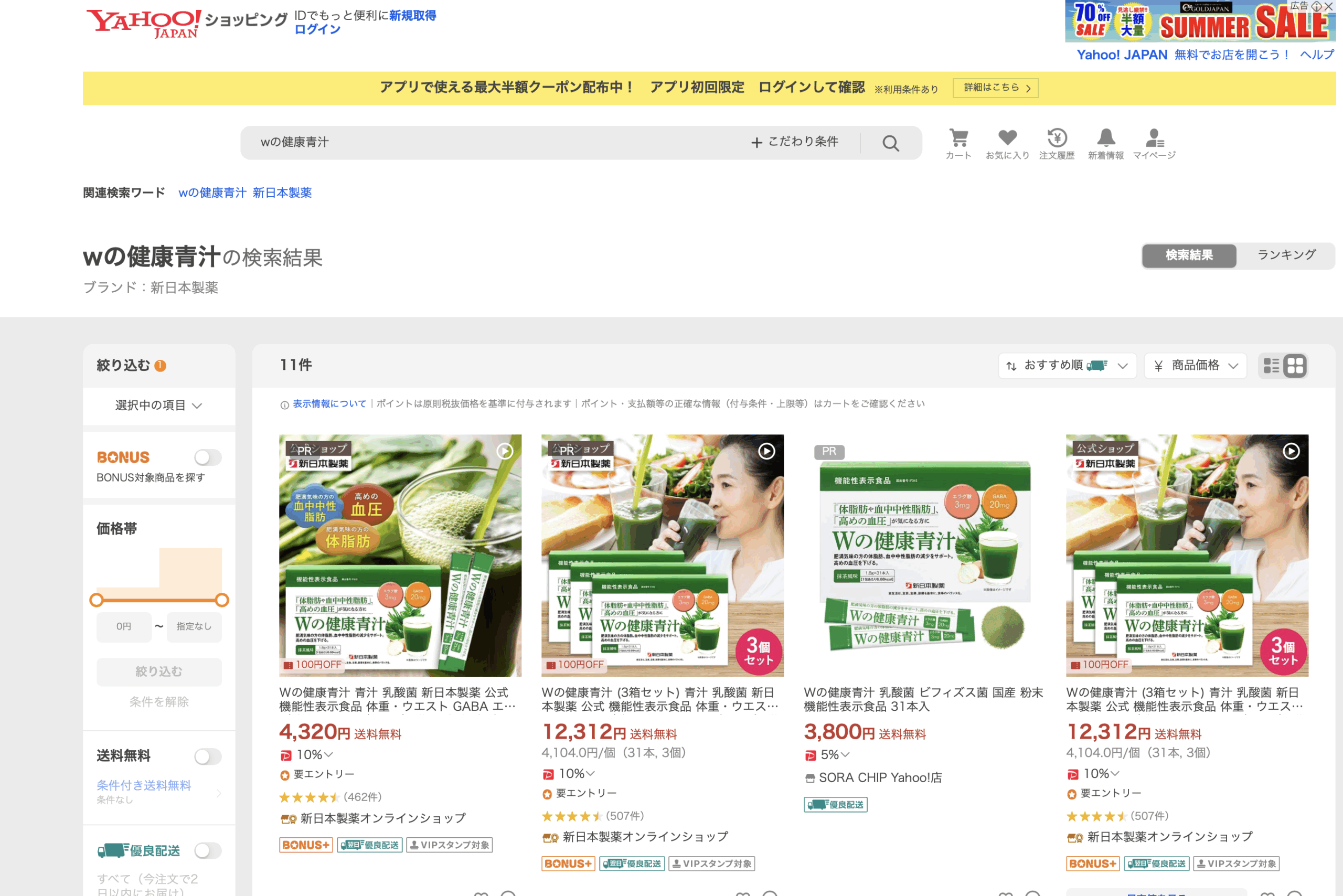 ヤフーショッピングにもWの健康青汁は販売しています。