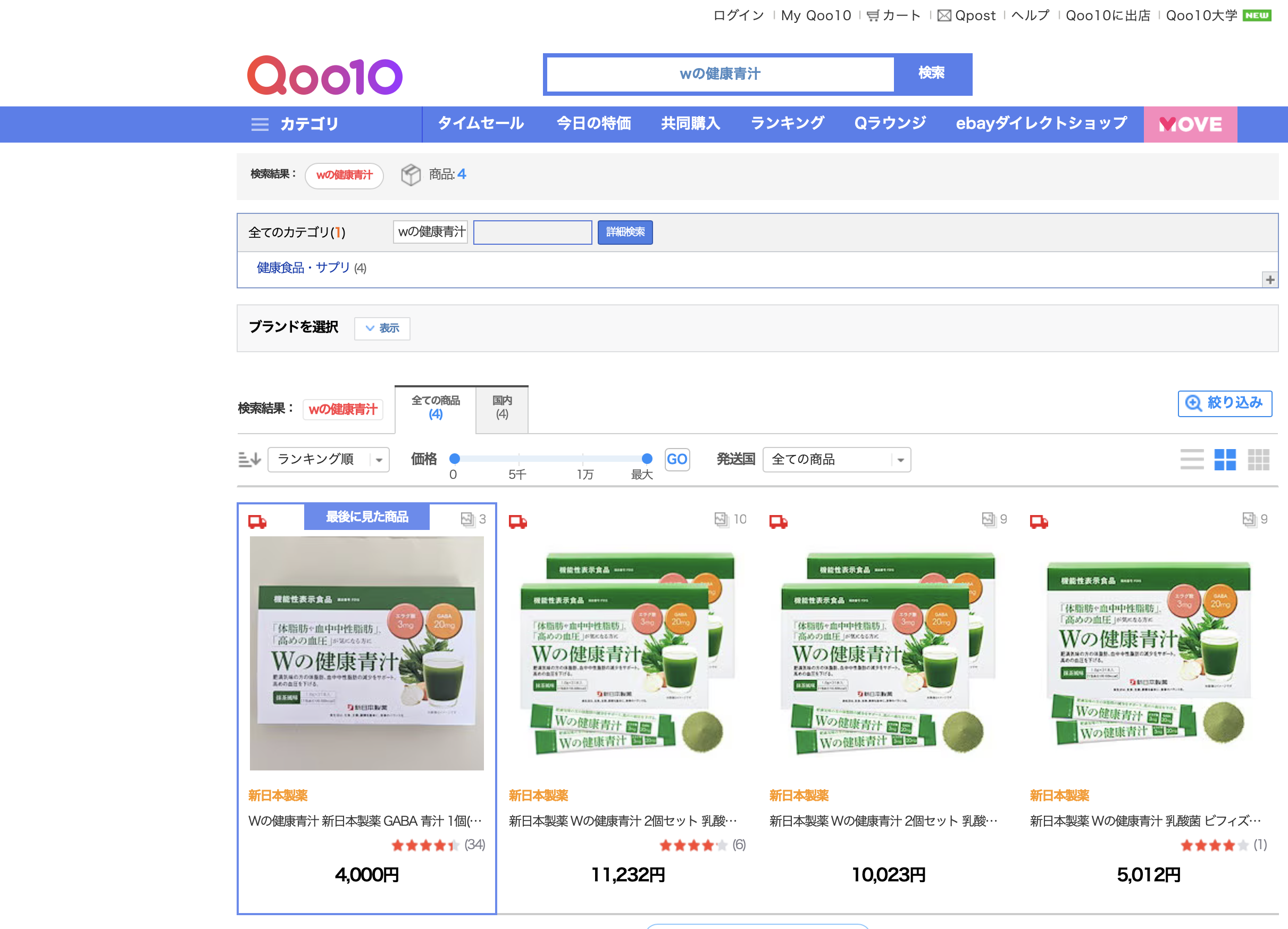 総合ECサイト「Qoo10」でもWの健康青汁は売っています。