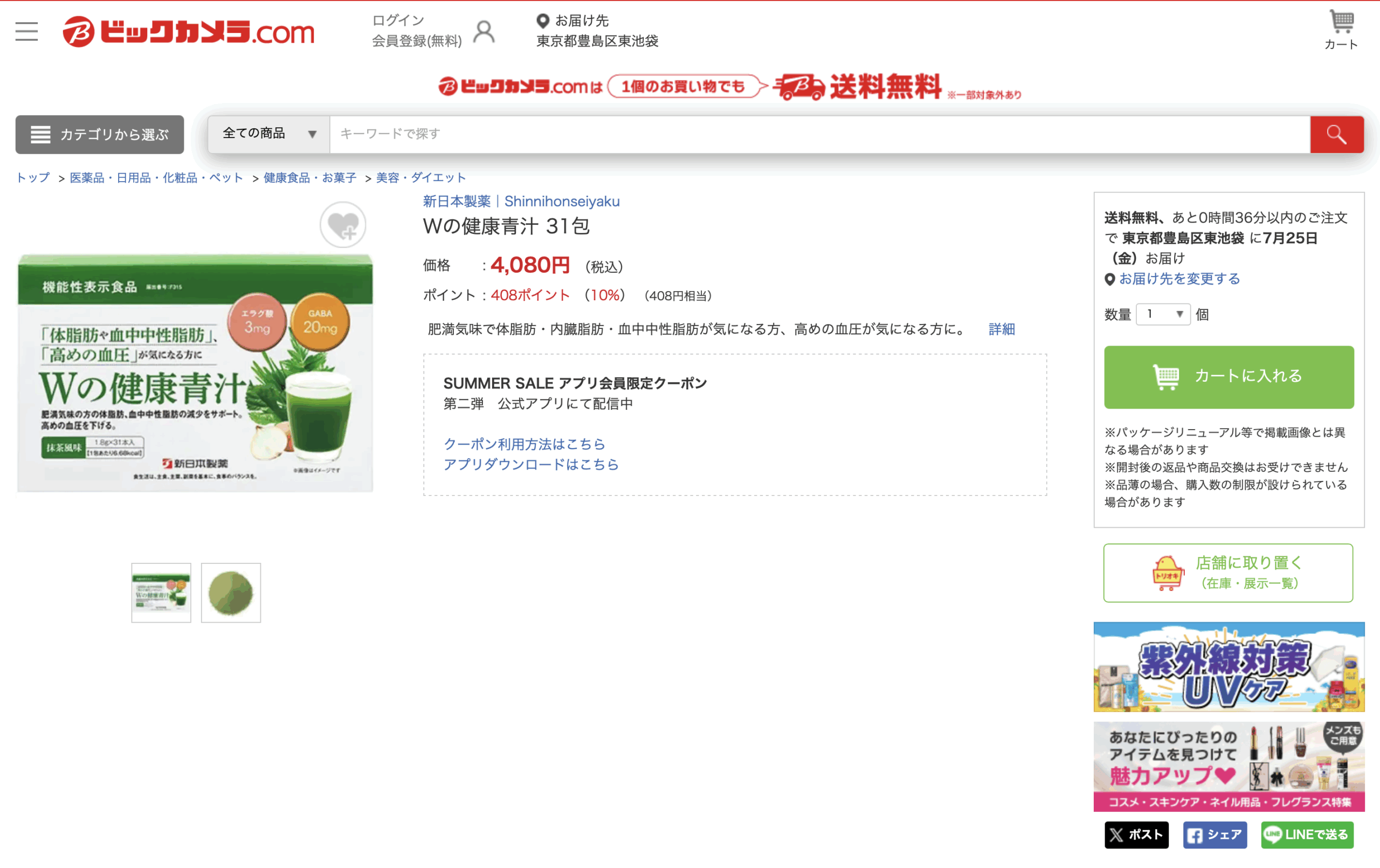 ビックカメラではWの健康青汁は売っています。通販サイトにも今のところ在庫があるようです。